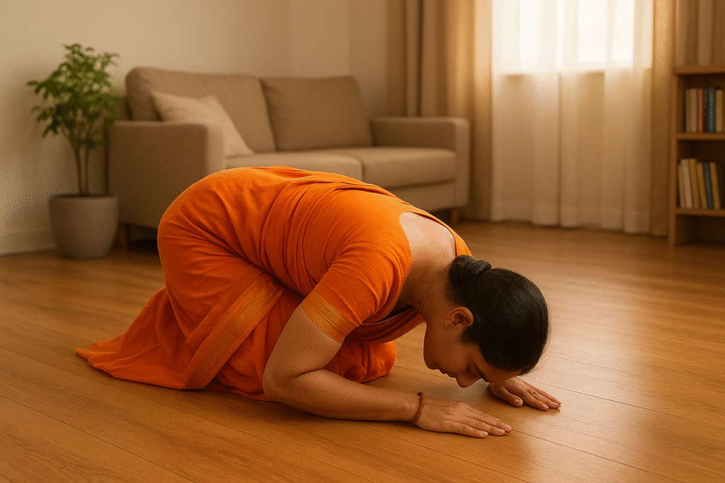 - Stand on the floor and chant the Bhumi Pranam mantra: Before stepping out of bed, gently place your feet on the floor while mentally or verbally reciting the prayer to Mother Earth.