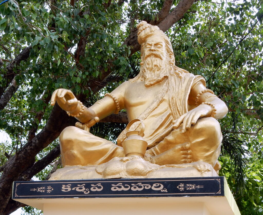 Vedic Origins Sage Kashyapa (कश्यप) is counted among the Saptarishis of the current age (Vaivasvata Manvantara) and is one of the most ancient seers mentioned in the Rigveda. He is the son of Marīchi (himself a mind-born son of Brahmā) and Kalā. The name Kashyapa is often interpreted as “tortoise” — symbolizing stability, patience, and the cosmic foundation. In the Vedas, Kashyapa and his lineage are credited with hymns, especially in Mandala IX, praising Soma Pavamāna.